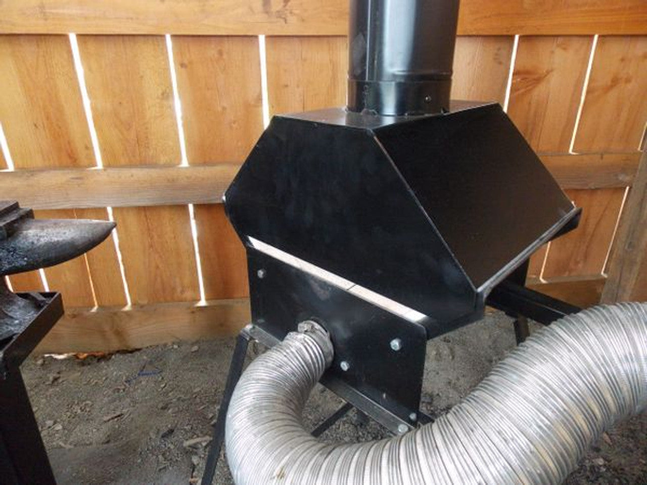 The forge hood fits directly on top of your forge and directs any smoke away from your work area. One of the best accessories your blacksmith forge can have!