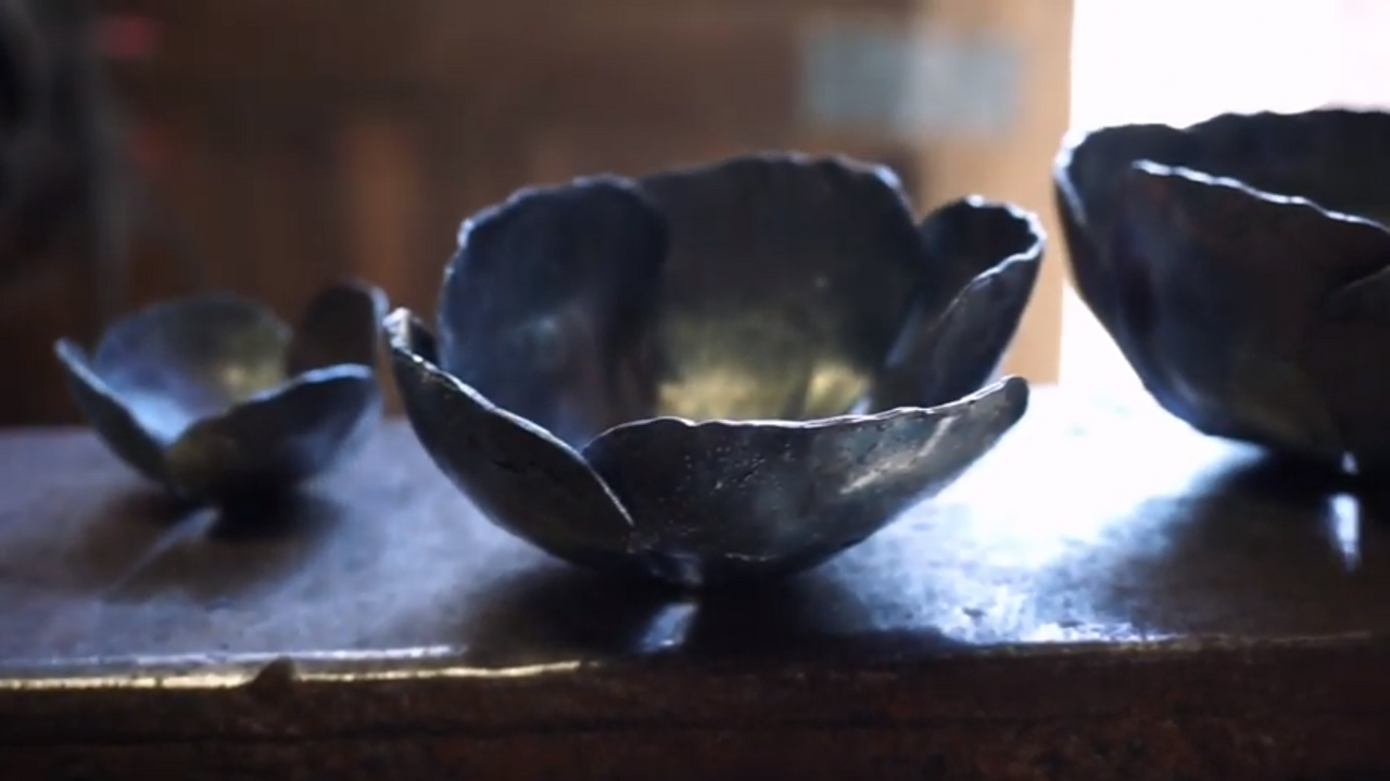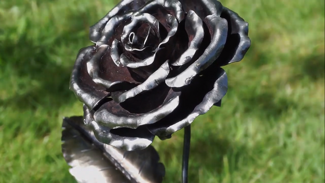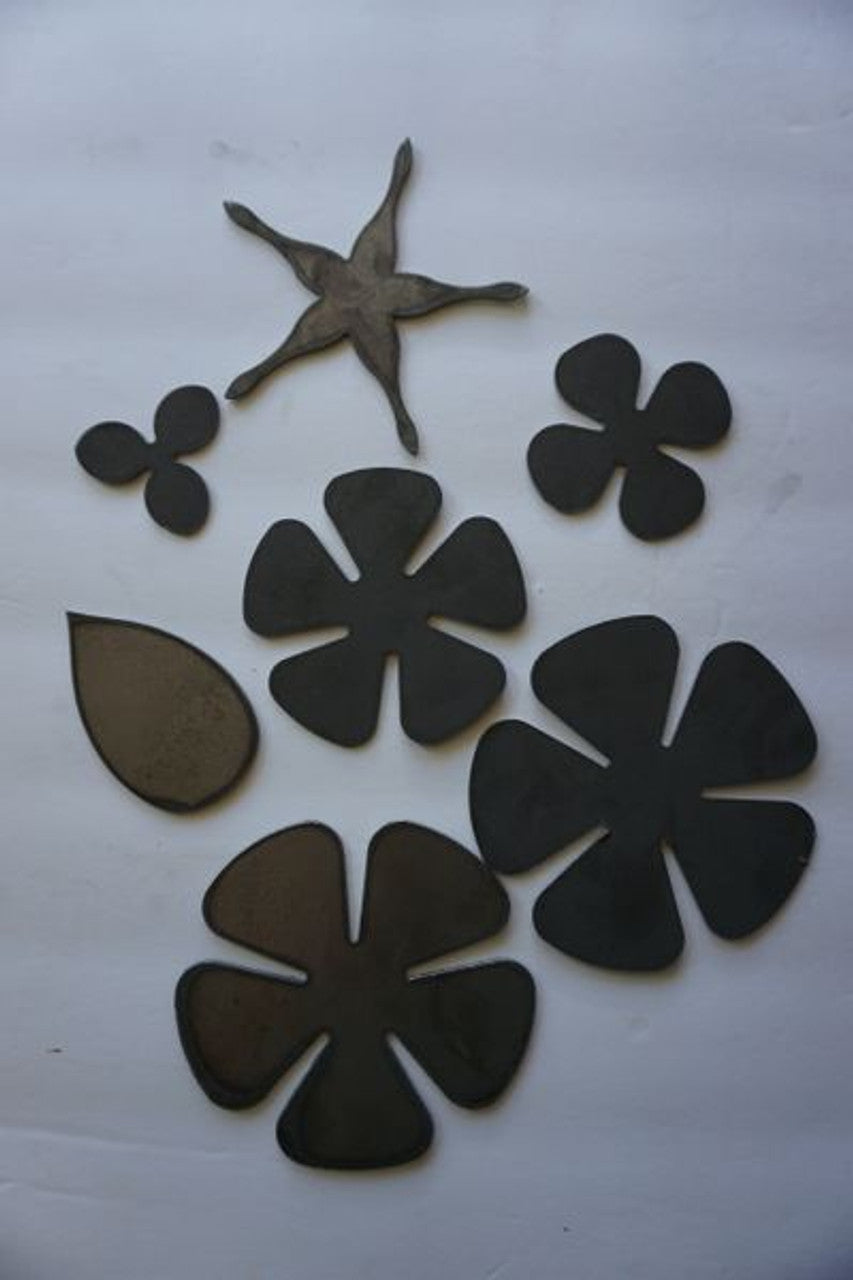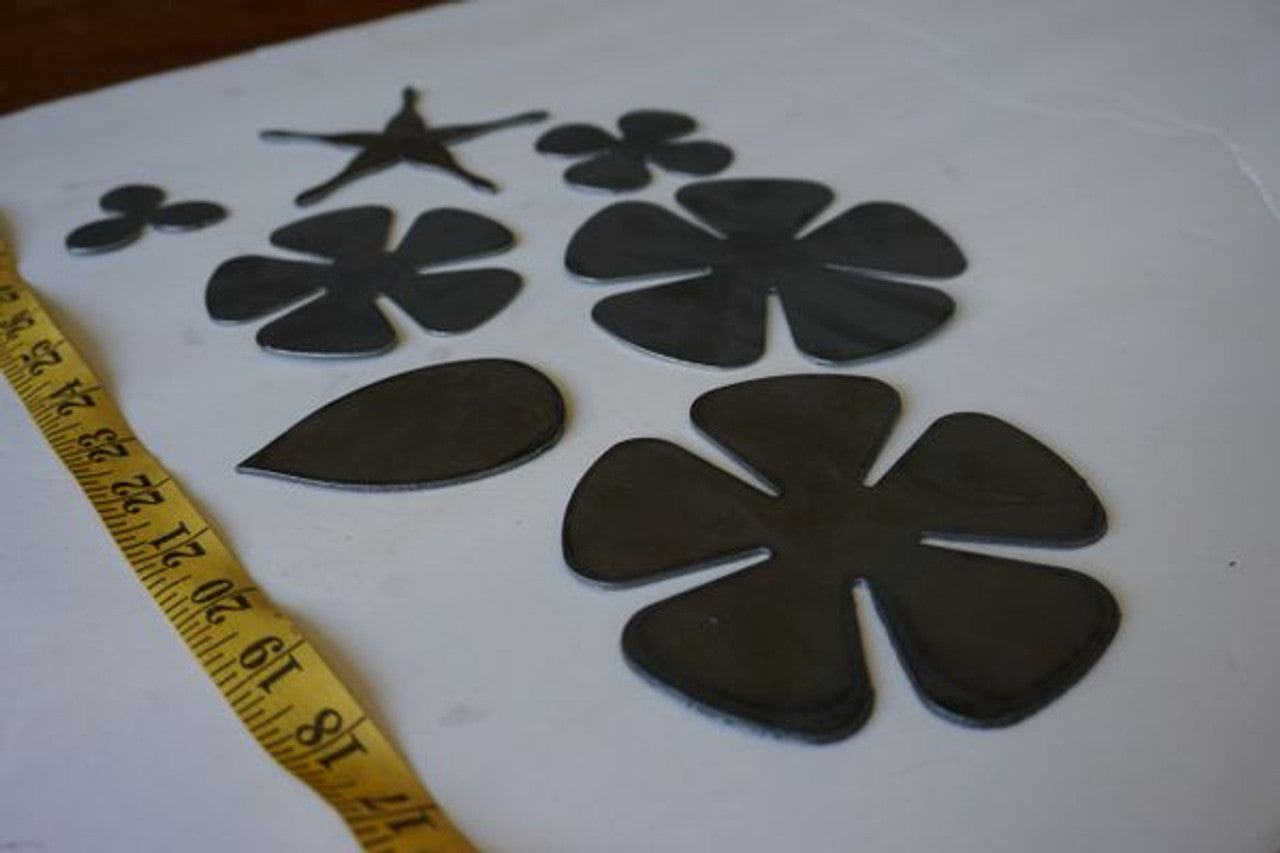 Seven piece blooming rose set includes 5 flower pieces, 1 leaf, 1 sepal, cut from 20ga. Stem not included. Suggested finish requires welding.